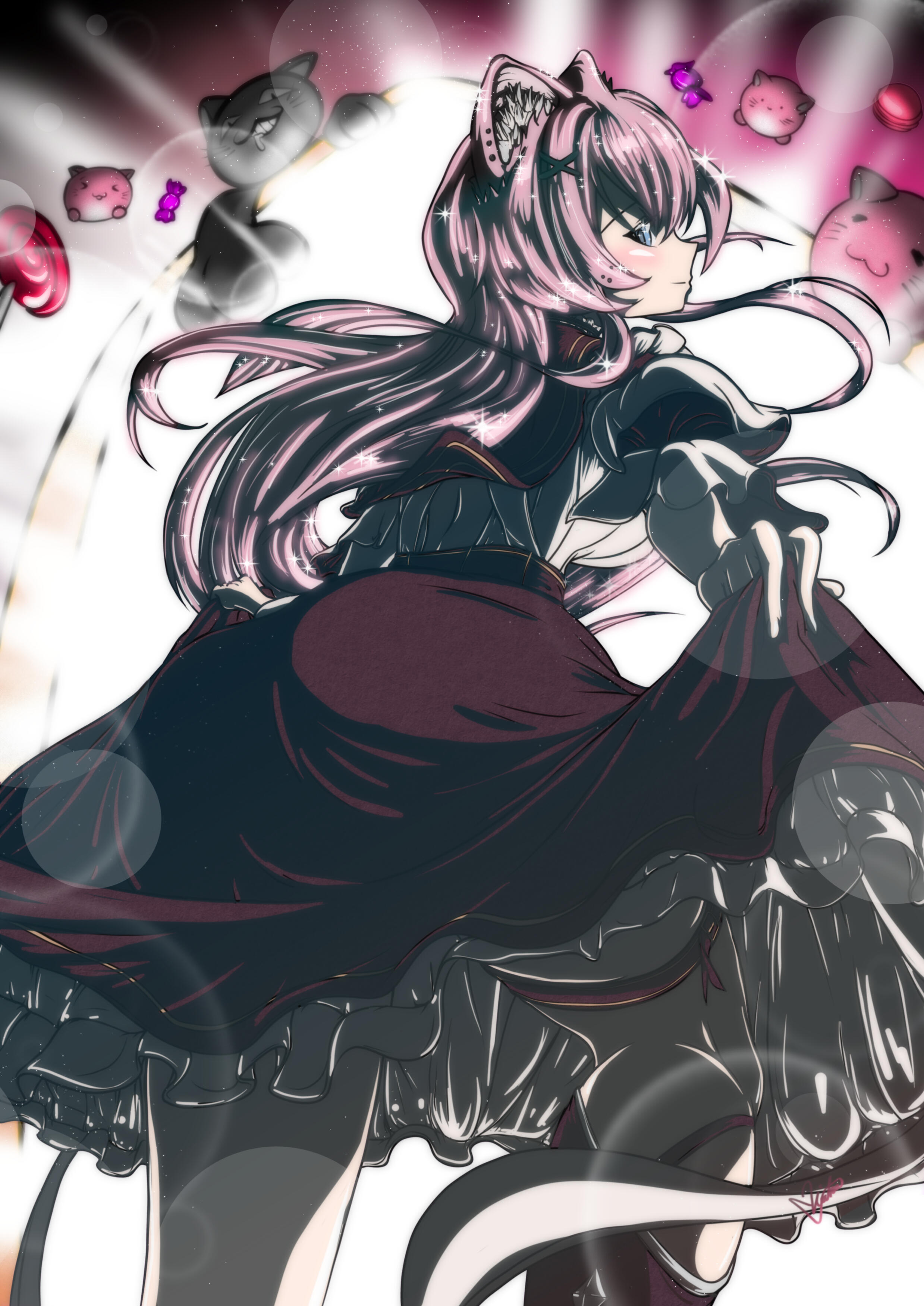 Lately I got hocked into making my own anime clip. It was a nice having actually trying yourself out what you are capable of, using your own knowledge about rendering art close to an actual anime movie/episode.Starting with basic sketches into flat colors, I realized how much effort it takes to get even 10 frames (1 second in my clip) ready. Adding shadows, highlights, overlays, bouncing & environmental lights made my original character acting more natural in her environment.Here's the final peace: